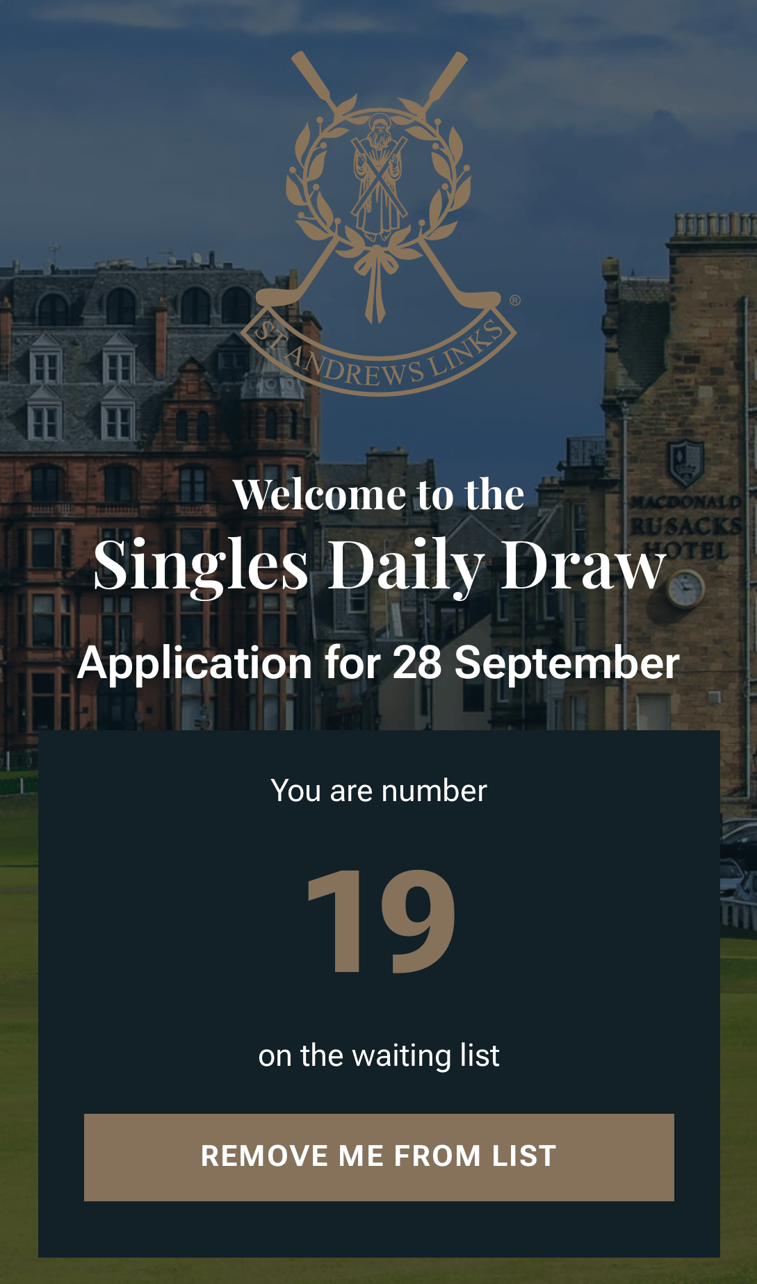 Last spring, St. Andrews Links Trust, which oversees the Old Course, replaced the queue with the singles daily draw, a “modern and equitable digital solution to its in-person singles queuing system,” the organization said in a statement.
